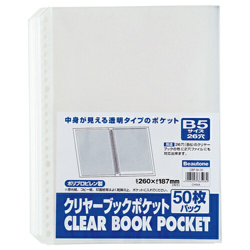 ビュートン クリヤーブックポケット クリヤー B5 26穴・50枚入パック CBP-B5-50 【北海道・沖縄・離島配送不可】