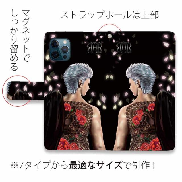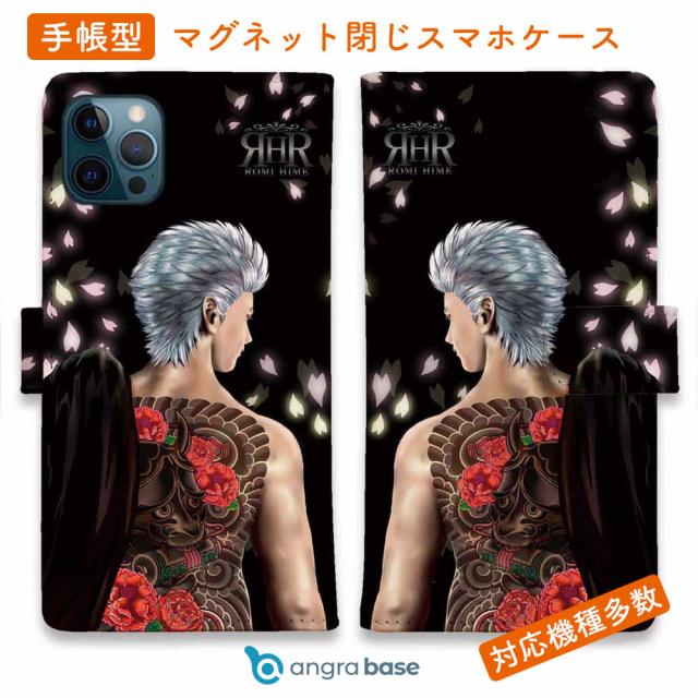 スマホケース 手帳型 カード収納 マグネット iPhone17 Pro Max iPhone Air iPhone16e iPhone16 Pro Max 16 Plus 15 Pro Max Xperia 10 VII Galaxy AQUOS ARROWS Pixel10 XL ROMI HIME 彫青 牡丹 和柄 桜