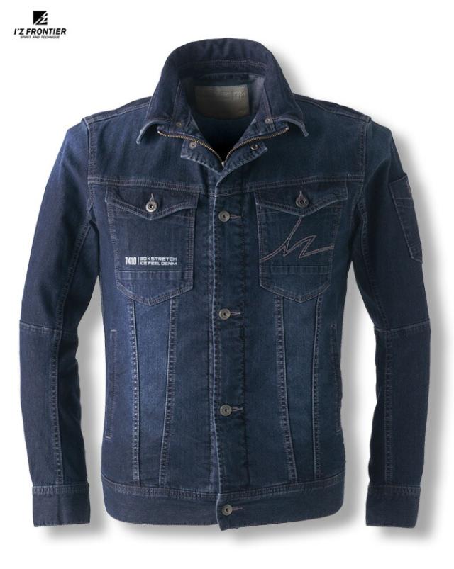 ストレッチワークウェアで業界に革命をもたらした先駆者「IZ FRONTIER(アイズフロンティア)」のストレッチ冷感デニムジャケットです。