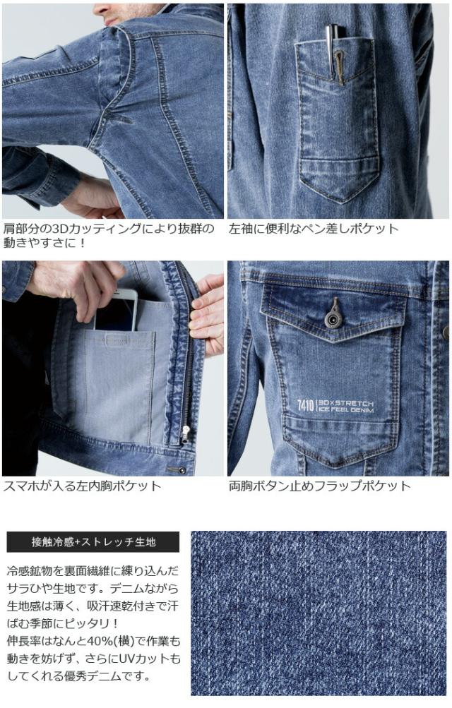 【在庫限り特価5,489→4,300円】ストレッチ冷感デニムジャケット アイスフィールデニムジャケット IZ FRONTIER アイズフロンティア #7410 IZ-7410 メンズ 春夏 ストレッチ 吸水速乾 UVカット ワーク 作業服 作業着