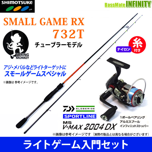 【送料無料】【ナイロン4lb(100m)糸付き】【アジ・メバル入門セット】スモールゲームRX 732T (チューブラーティップ)+スポーツライン MS V-MAX 2004DX