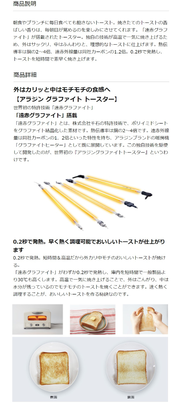 アラジン グラファイト トースター 2枚焼き CAT-GS13A(G) / AET-GS13N(W)