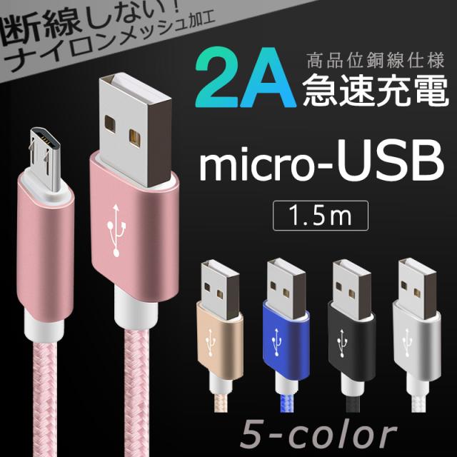 MicroUSB Android 急速 充電 高耐久 充電 スマホ 断線防止 【micro USB/1.5m】 送料無料