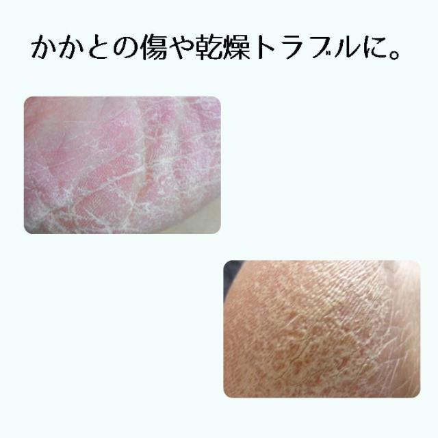 乾燥によるひび割れやガサガサになったかかとのケアにも。