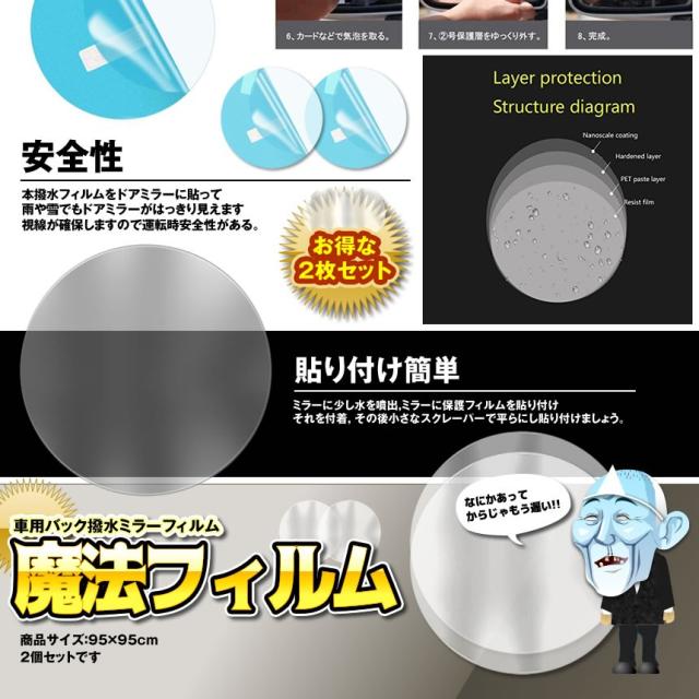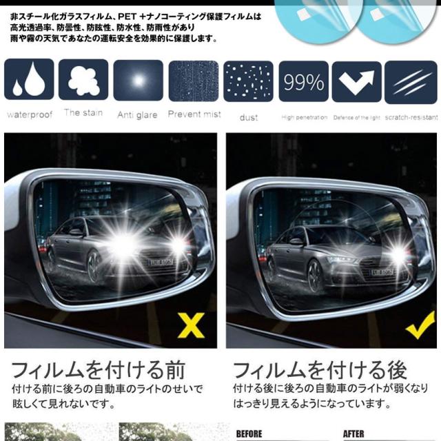 魔法フィルム 2枚セット カー バックミラー 防水 車用 汎用型 撥水ドアミラーフィルム 防水 雨除け 防霧 スクラッチ防止 保