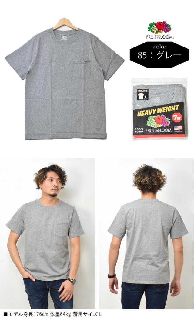 FRUIT OF THE LOOM フルーツオブザルーム 胸ポケット 半袖Tシャツ 無地 パックTシャツ 1P メンズ 14669000