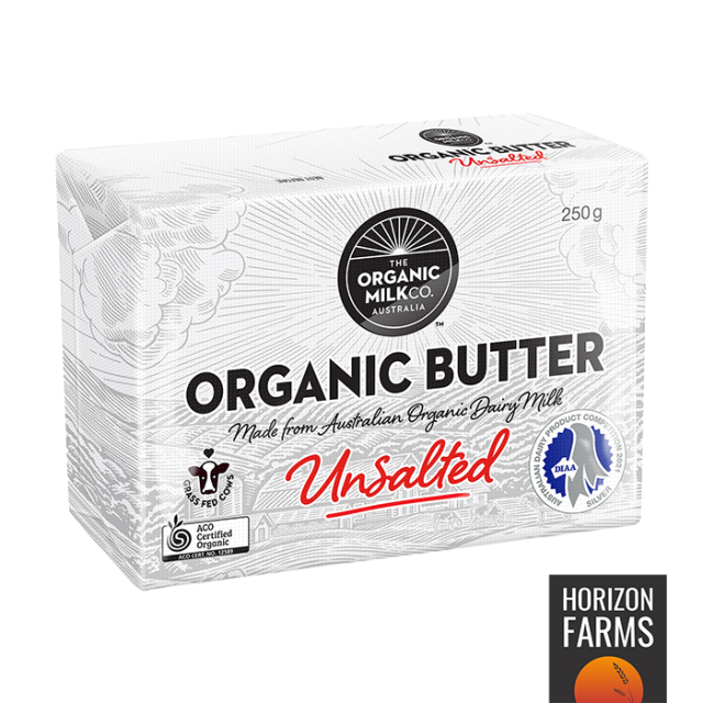 世界中の高品質な食品を選りすぐりお届けしている HORIZON FARMS からついに世界最高峰のバターをご案内させていただく時がきました。日本ではなかなか見られない、グラスフェッドで育った牧草牛(グラスフェッド牛)の生乳より作られ、オーガニック認証を受けた最高品質のオーストラリア産バターです。牛たちは広大な牧草地で伸び伸びと自由に草を食べて育ち、成長促進ホルモン剤や抗生物質は投与されておりません。もちろん餌となる牧草も化学物質や殺虫剤とは無縁かつ、遺伝子組み換えではないものになります。これほどクリーンなバターはなかなか無いのではないでしょうか。