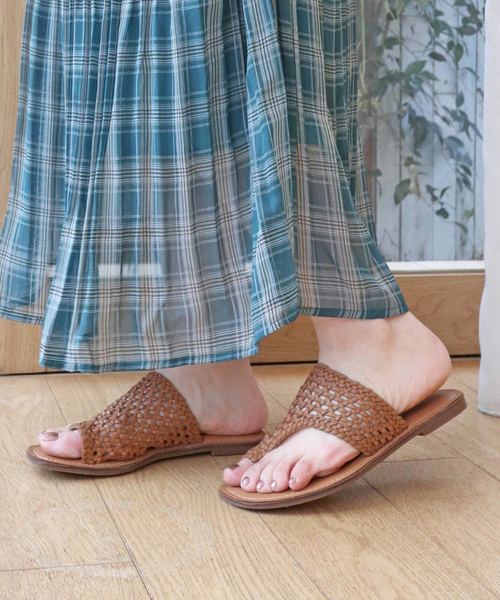 モードカオリ(MODE KAORI)/【本革】メッシュ スクエアトゥ トングサンダル