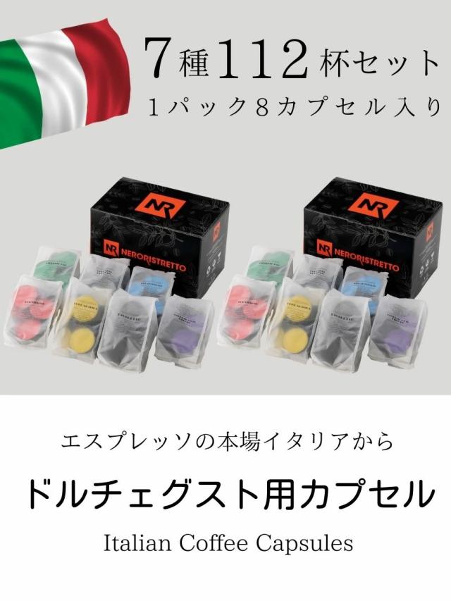 7種112杯 イタリア製 ドルチェグスト 互換 カプセル 「NeroRistretto」コーヒーアソートセット Made in Italy 送料無料