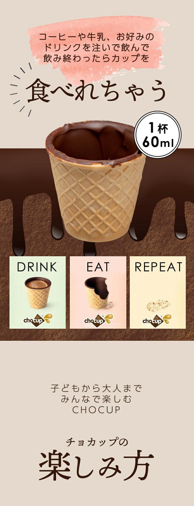 イタリア製 コーンカップ 1箱12個 ワッフルコーン 食べられるカップ CHOCUP チョカップ チョコレート エコショット チョコレートコーティング スイーツ ネスプレッソ カプセル ドルチェグスト ホワイトデー お返し 手作り キット 子供 2021 おしゃれ ギフト プレゼント