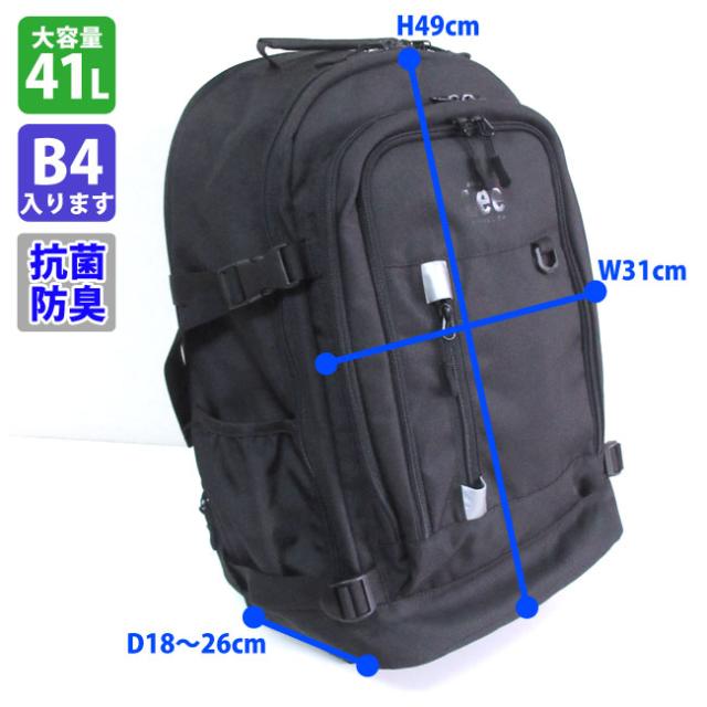 抗菌防臭素材を使用した大容量リュック。ブランドのロゴがポイント。B4も収まる大容量。