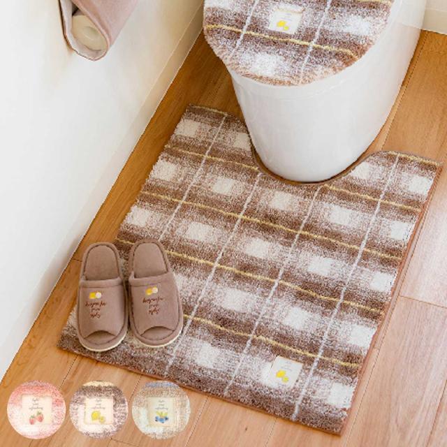 トイレマット 75×63cm フライストイレマット トイレ マット 北欧 フルーツ フルーツ柄 ( 足元マット ロング ふんわり 洗濯OK 滑り止め チェック柄 トイレタリー すべり止め 丸洗い 75×63 ピンク ブラウン ベージュ )