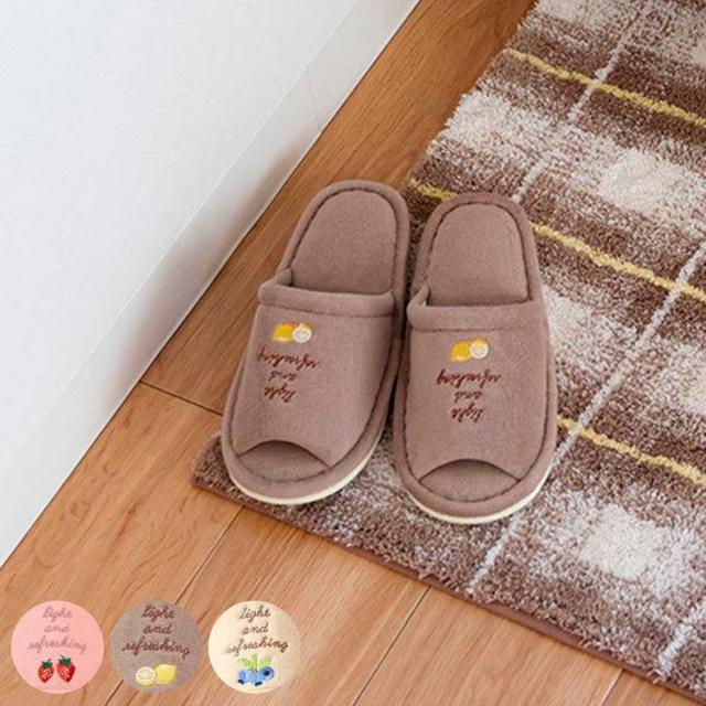 トイレスリッパ フライス スリッパ 北欧 トイレ トイレ用 かわいい ( トイレ用スリッパ 前開き タオル地 洗濯OK ルームスリッパ 23〜25cm トイレ用品 ウォッシャブル ファブリック フルーツ柄 ピンク ブラウン ベージュ )