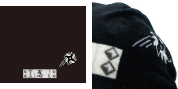 | おもしろデザイン タオルにはおもしろいデザインがプリントされています。巻くだけで、忍者に変身! | シャーリング生地加工 肌触りの良いシャーリング生地加工なので吸水性抜群です。 |