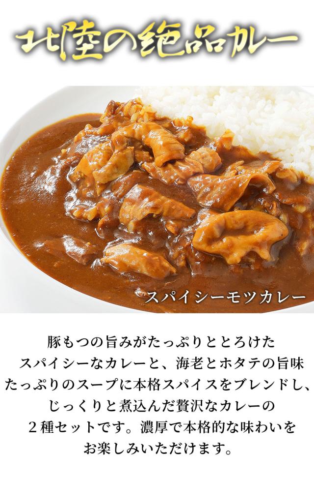 北陸の絶品カレー 各 2 食(計 4 食)スパイシーモツカレー シーフードスープカレー 200gx2