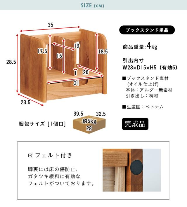 【引き出し付き】ERIS KIDS(エリスキッズ) 35 BOOK STAND NA デスクシェルフ 汎用パーツ デスク 机 シェルフ 棚 本棚 卓上 机上 おしゃれ コンパクト スリム シンプル ナチュラル アルダー 木製