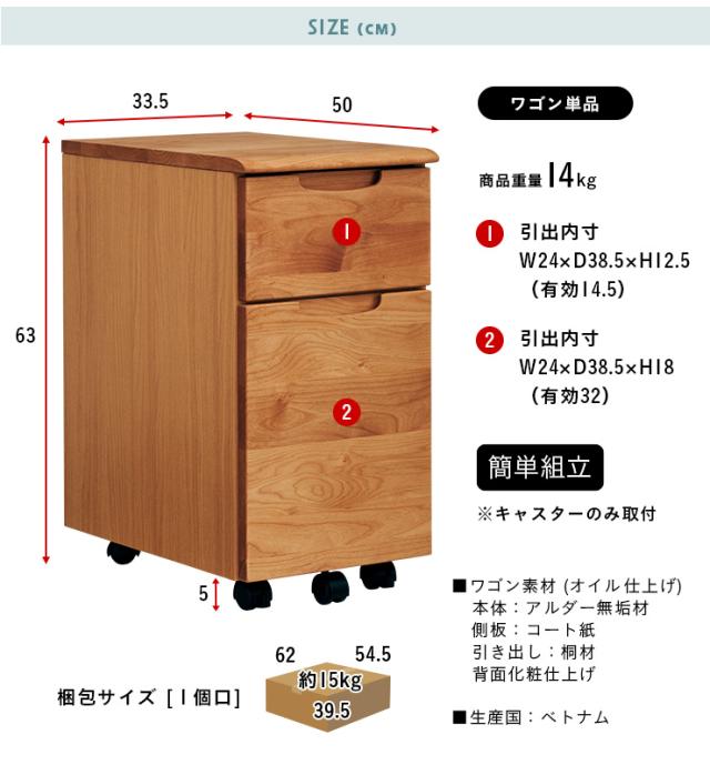ERIS KIDS(エリスキッズ) WAGON 34 NA キャスター付 学習机用ワゴン サイドワゴン サイドチェスト 子供部屋 学習机 学習デスク ナチュラル アルダー 木製 勉強机 勉強デスク