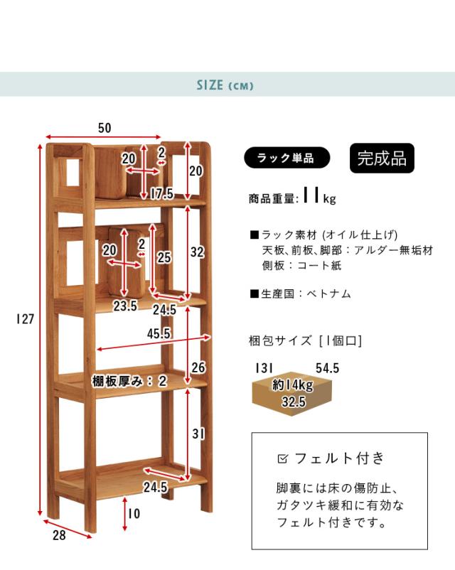 ERIS KIDS(エリスキッズ) 50 RACK NA 完成品 可動棚 本棚 ブックラック 本棚シェルフ シェルフ ランドセルラック ランドセル収納 ディスプレイ棚 木製 アルダー 収納棚 おしゃれ 子供部屋
