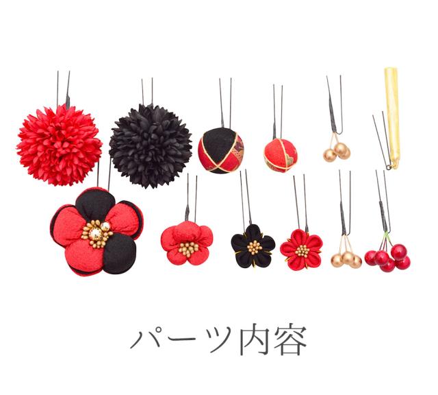成人式 振袖 髪飾り 12点セット つまみ細工 振袖用 髪飾りセット タッセル Uピン ヘアアクセサリー 和装 アクセサリー ゴールド 赤 黒 金 前撮り 七五三 753 浴衣 袴 入学式 卒業式 結婚式 ブライダル 披露宴 和風 洋風 アレンカ Arenca