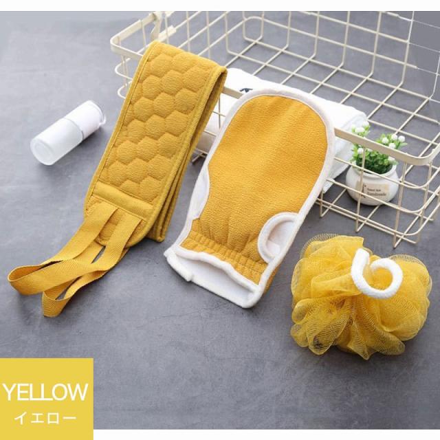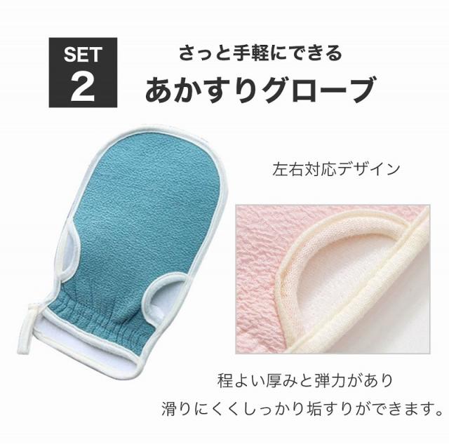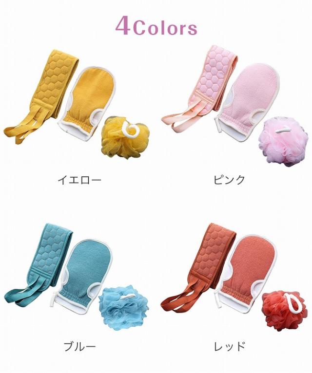 あかすり 3点セット グローブ タオル 泡立てネット ピーリング おうちエステ ボディケア ツルツル肌 黄 青 赤 ピンク agesugi_snk