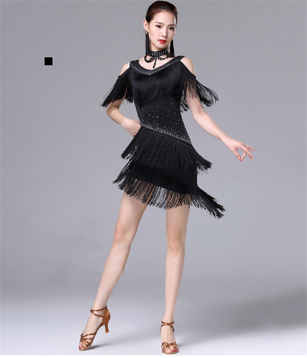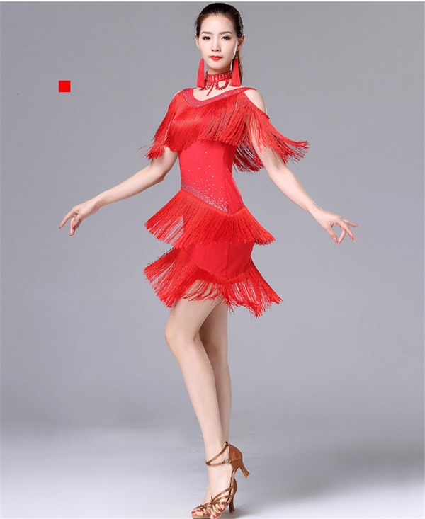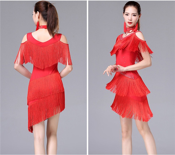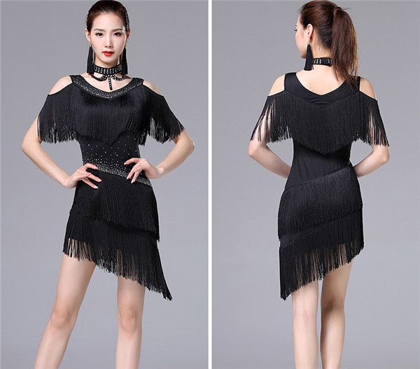 【送料無料】ラテンドレス ラテンダンス ダンス衣装 演技服 ワンピース 練習着 ワルツ チャチャチャ ラテン ステージ衣装 演出着 演出用 フリンジ