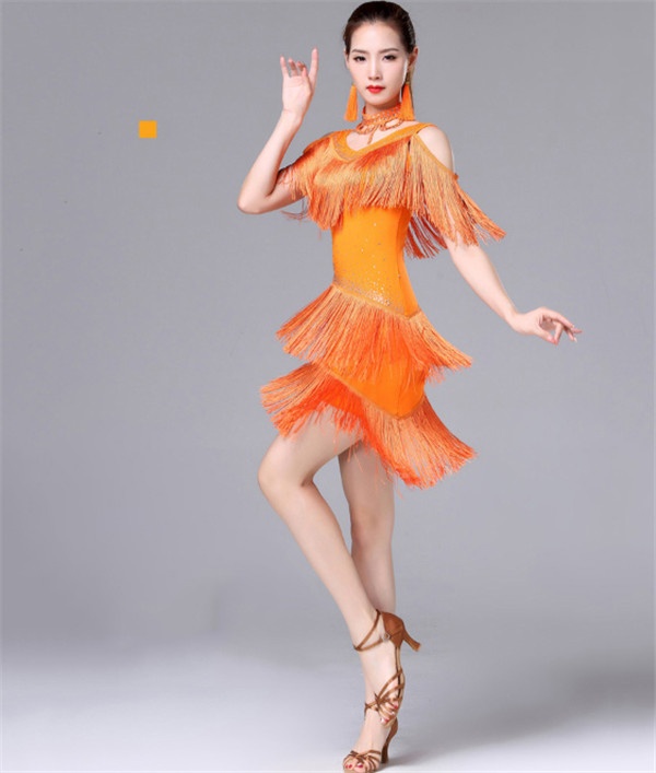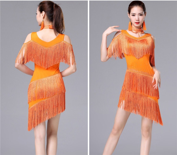 ラテンドレス ラテンダンス ダンス衣装 演技服 ワンピース 練習着 ワルツ チャチャチャ ラテン ステージ衣装 演出着 演出用 フリンジ db078l6l6s3