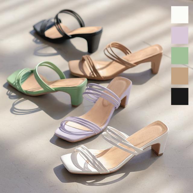 春新作 スクエアトゥナローストラップミュールサンダル I2277 入荷済 OR プレゼント レディース 体型カバー きれいめ 歩きやすい 安定感