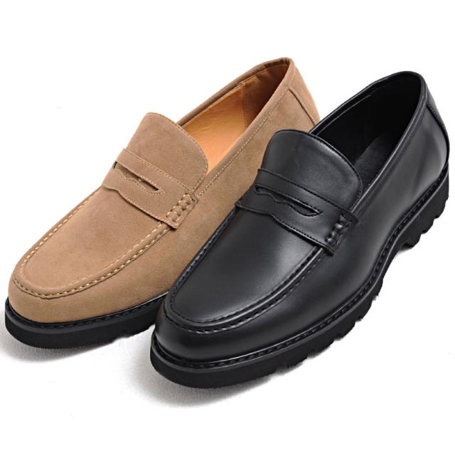 ローファー メンズ 靴 シューズ モカシンシューズ ドレスシューズ ペニーローファー タンクソール 厚底 定番 シンプル 合成皮革 合皮 スウェード ブラック ベージュ 黒 カジュアル ビジネス 2021 即日発送 [6301]