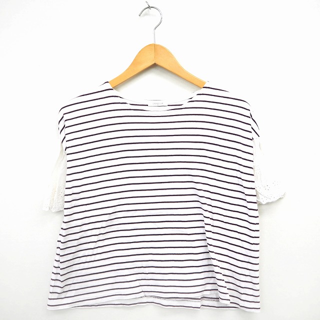 【中古】シネマクラブ CINEMACLUB シャツ ブラウス Tシャツ カットソー ボーダー 丸首 半袖 コットン 綿 M パープル