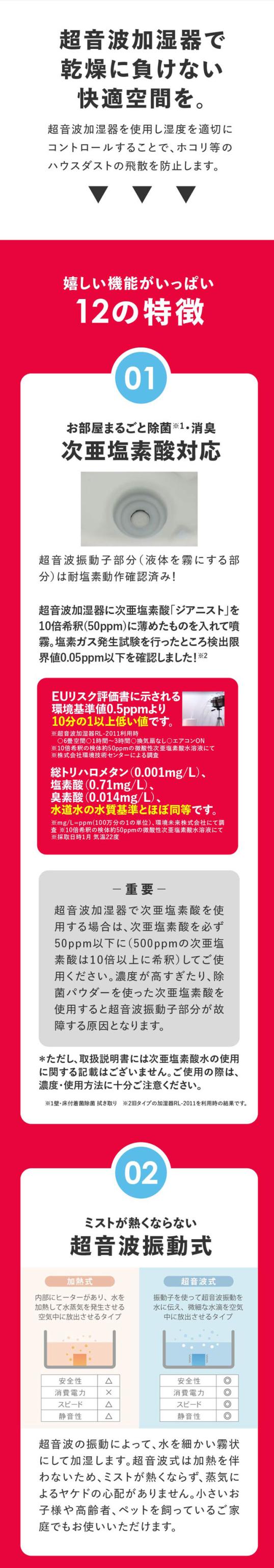 次亜塩素酸水対応加湿器 超音波式 加湿器 卓上 省エネ 大容量 2.5Lタイプ 次亜塩素酸水 500ppm ジアニスト 40L パーフェクトセット 公式 次亜塩素酸水 加湿器 部屋の匂い消し 室内除菌 除菌 消臭 花粉 乾燥 空間除菌 空間消臭 超音波加湿器 【宅配便】