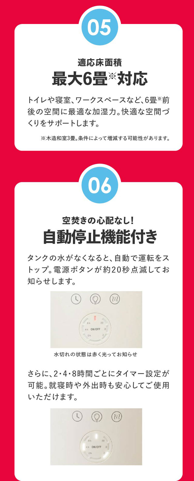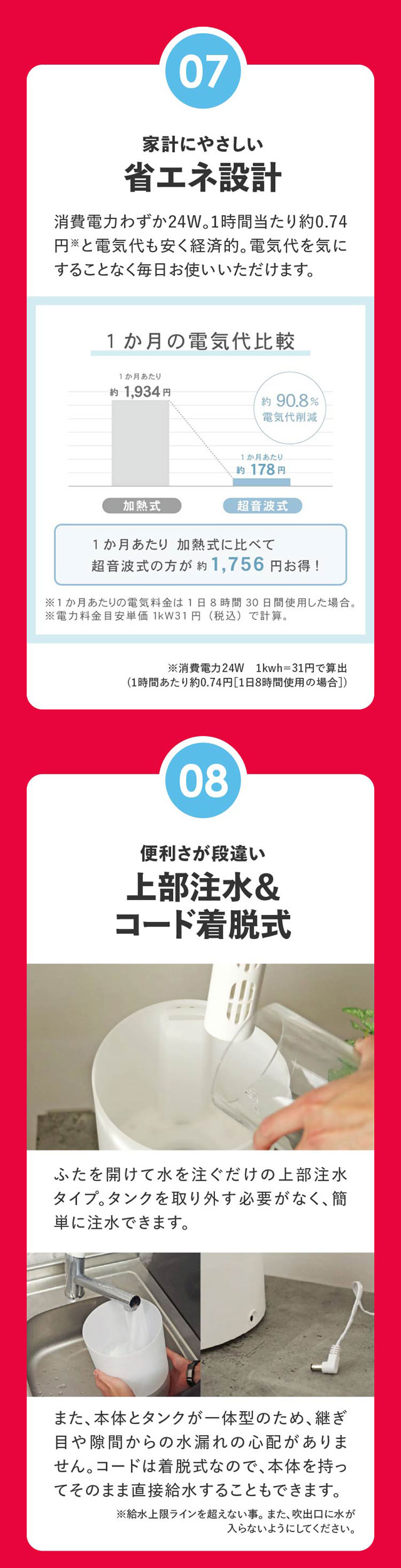 | 給水方法 | 上部給水タンク式 容量2.5L(水切れ自動停止機能付き) |