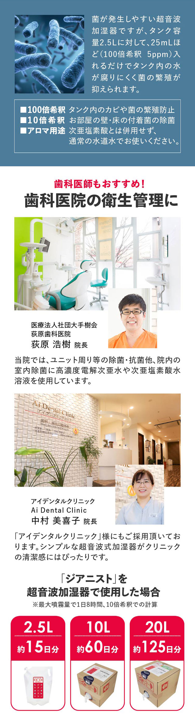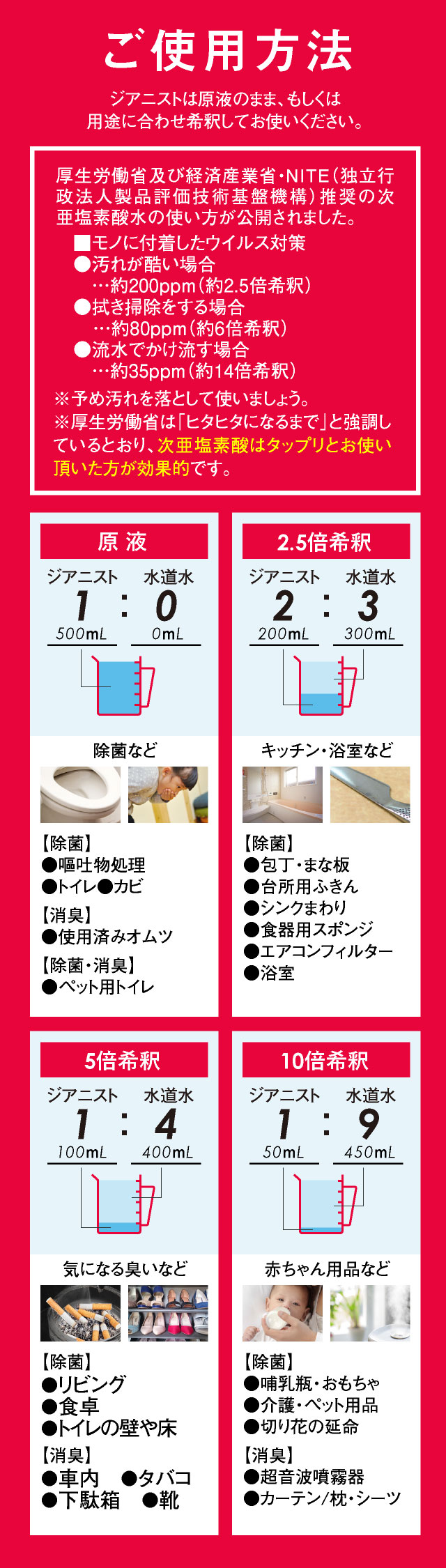 | 商品名 | ジアニスト 500ppm強 pH5.8前後(製造時) |