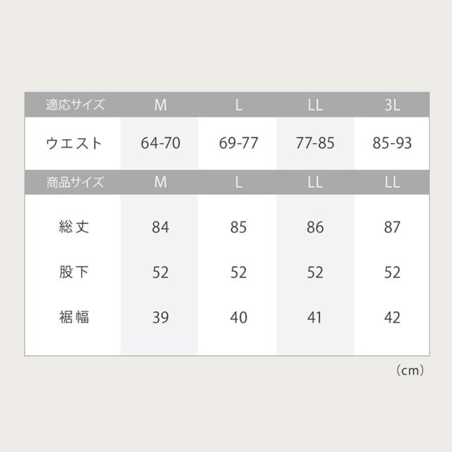 ■サイズ:M/ウエスト64-70、総丈84、股下52、裾幅39、L/ウエスト69-77、総丈85、股下52、裾幅40、LL/ウエスト77-85、総丈86、股下52、裾幅41、3L/ウエスト85-93、総丈87、股下52、裾幅42cm。モデル/身長162cm、Mサイズ着用。