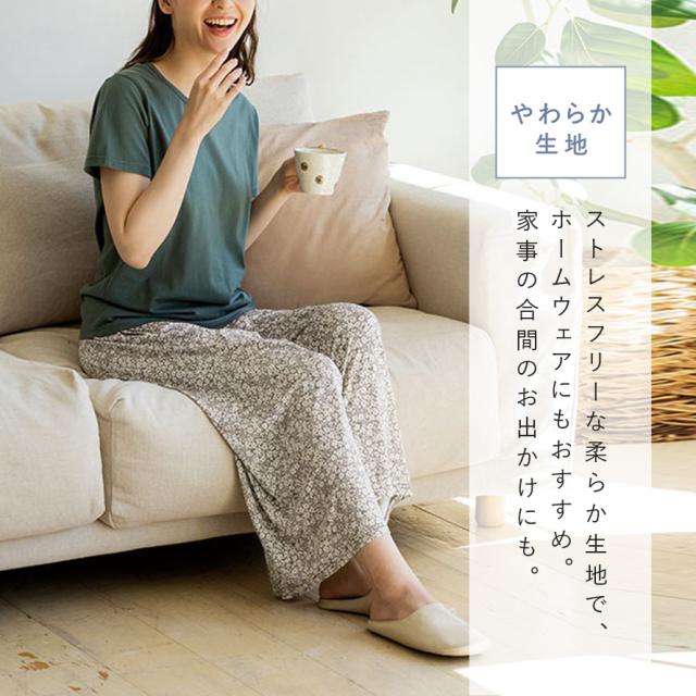 サラッとした肌ざわり。軽くてラクチンワイドパンツ。夏の汗ばむ時期も快適に履いていただけます。