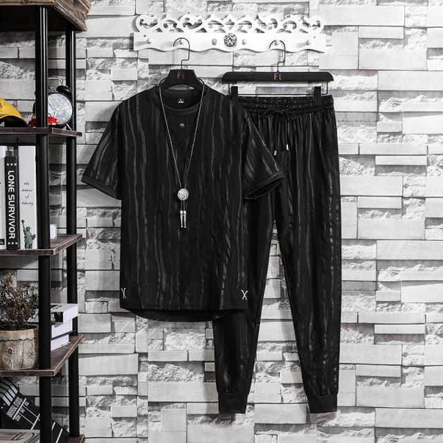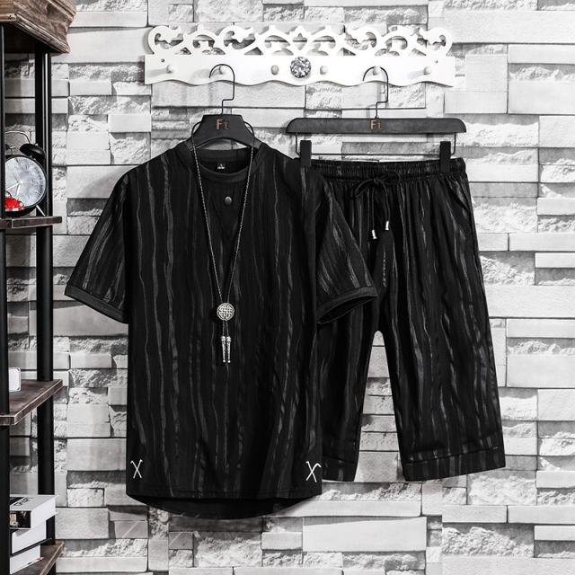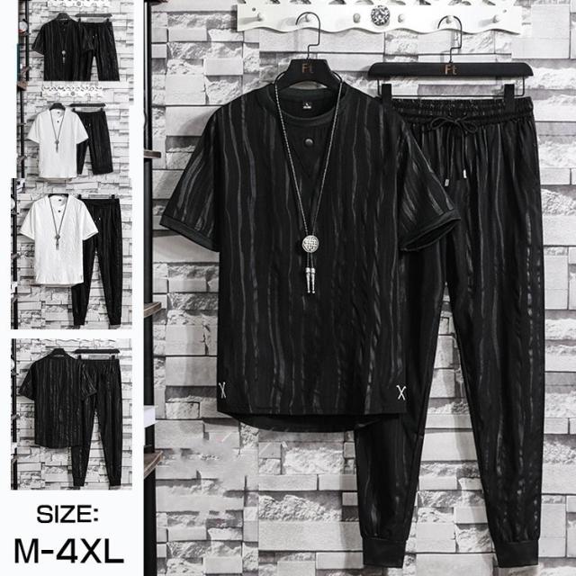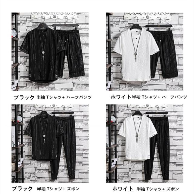 半袖セットアップ メンズ 夏 綿麻風 上下セット ストライプ柄 ジャージ上下 スポーツウェア 大きいサイズ 新作