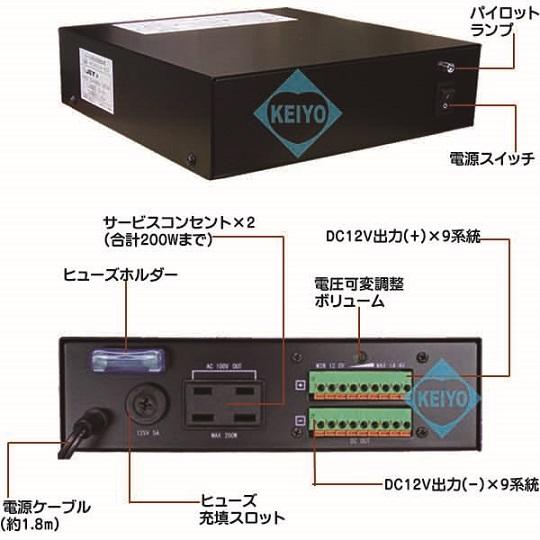 KCPS12-63(PS-1270S)は、コンセント一つで多数の機器に 電源供給が可能な集中電源ボックスです。