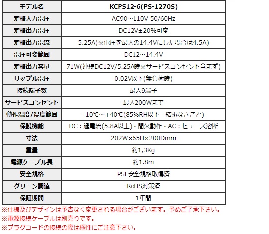 ・KCPS12-63本体・ACケーブル(装着済)・予備ヒューズ・取扱説明兼保証書■ 一緒に使うと便利な製品