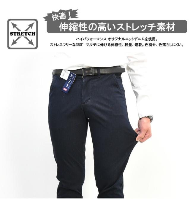 ハイパフォーマンス オリジナルニットデニムを使用。ストレスフリーな360°マルチに伸びる伸縮性、軽量、速乾。色褪せ、色落ちしにくいデニムカラー。オンオフ使える豊富なカラー展開も嬉しいポイントです。