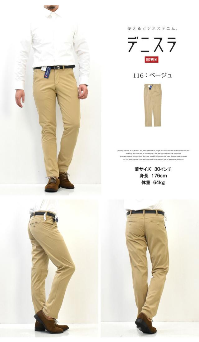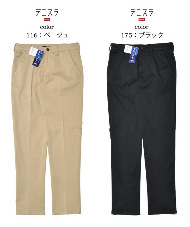 EDWIN エドウィン デニスラ スリムテーパード スラックス チノ ストレッチ トラウザー 仕事着 ビジネスカジュアル 送料無料 EDB102
