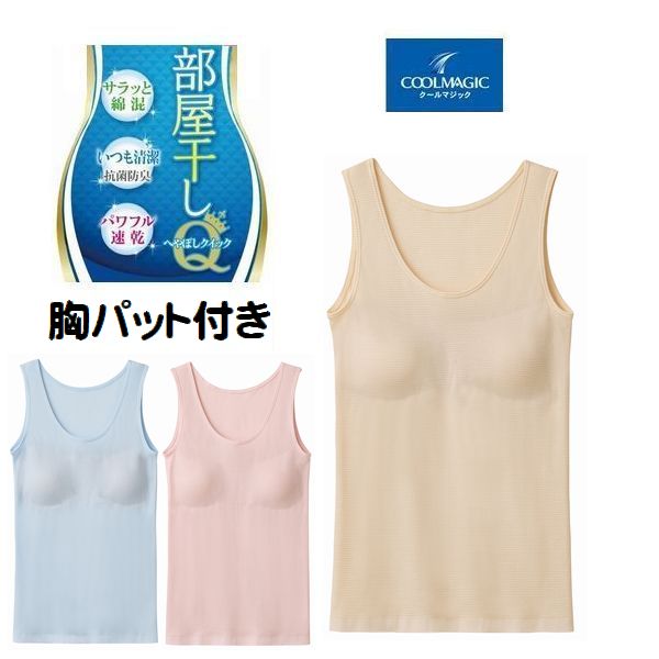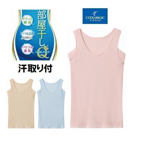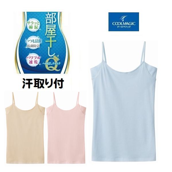 グンゼ キャミソール 汗取り付き インナー キャミ 婦人 肌着 綿混 クールマジック 部屋干し 抗菌 防臭 おすすめMC9157
