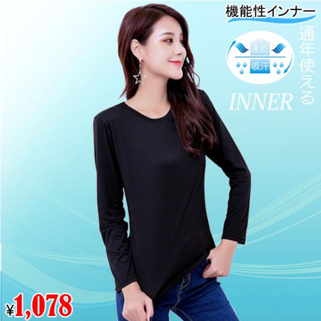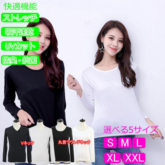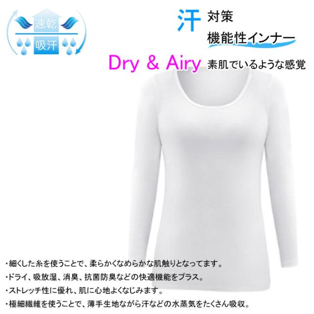 機能性インナー 長袖 汗取り 長袖 丸首 Vネック レディース 春 夏 汗対策 ドライ 脇汗 汗染み ストレッチ 吸汗速乾 M L LL 大きいサイズ 送料無料