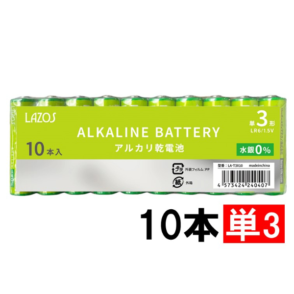 10本 単3 アルカリ電池 乾電池 LAZOS製 LA-T3X10 ネコポス送料無料