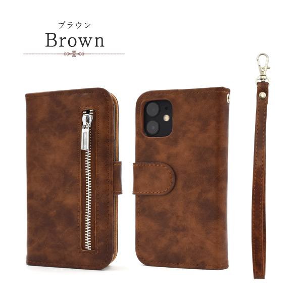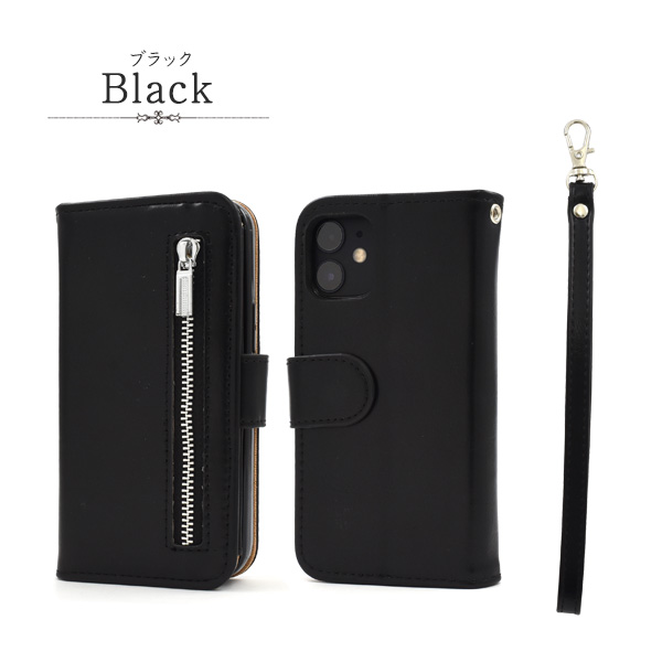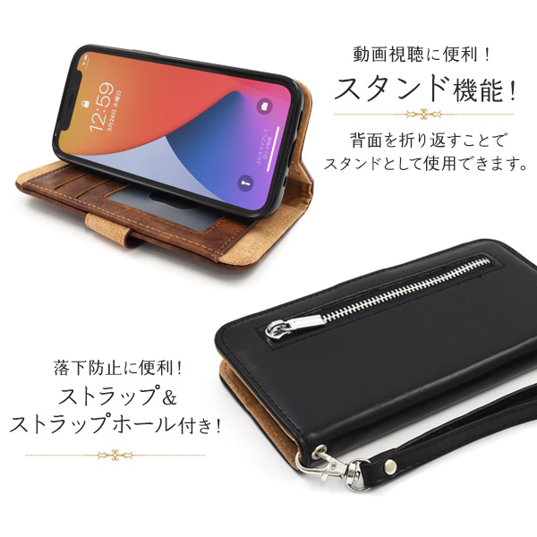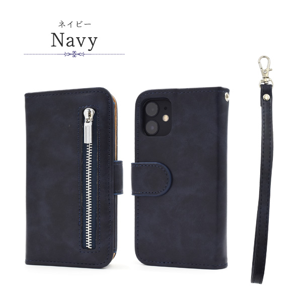 スマートフォンケース iPhone12mini用 手帳型 ファスナー&ポケットレザーケース 装着簡単 携帯ケース シンプル カジュアル 保護カバー ベーシック アイフォンケース スマホケース 装着簡単 上品 オシャレ 可愛い お洒落 スマホカバー SoftBank au docomo おしゃれ