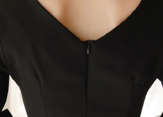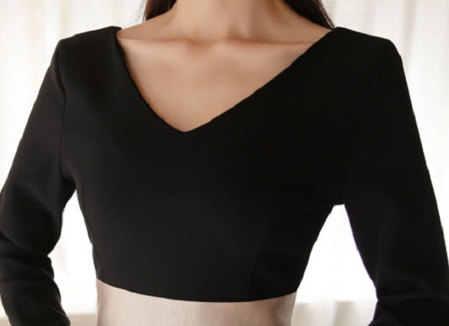 大きく開いたVネックでデコルテ回りを美しく演出してくれるスレンダーワンピースです。