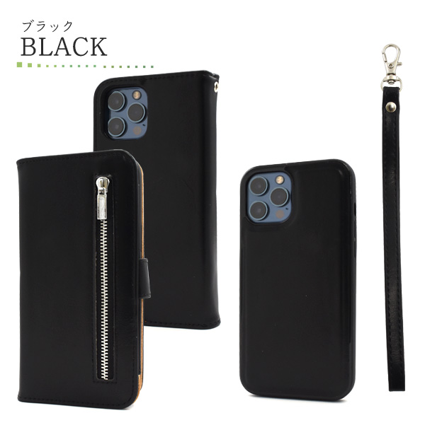 スマートフォンケース iPhone12ProMax用 手帳型 ファスナー&ポケットレザーケース アイフォンケース 撮影時に便利 内部ケース 取外し可 スマホケース ベーシック シンプル 装着簡単 携帯ケース 上品 オシャレ 可愛い お洒落 スマホカバー SoftBank au docomo おしゃれ