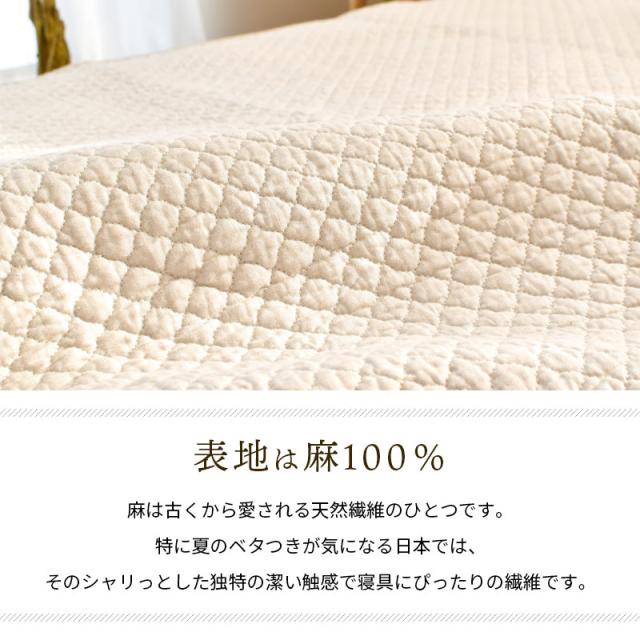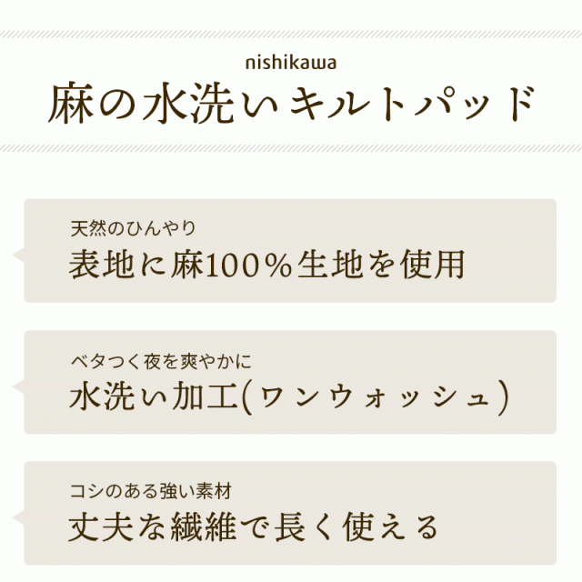 西川 敷きパッド【ダブル】 麻100% ひんやり クールパッド 夏 涼感 通年 接触冷感 四隅ゴム 洗える 140×205 2025y5 2mtm25