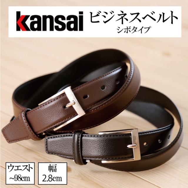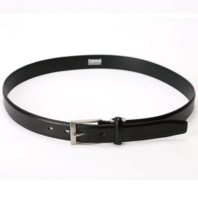 ベルト メンズ ビジネス シンプル 薄い 牛革 合皮 ピン バックル シボ 最大98cm 調整 調節 可能 kansai カンサイ ksbas101-10 革小物