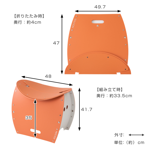 | サイズ | 約 幅48×奥行33.5×高さ41.7(cm) 座面高:約 35(cm) 折りたたみ時:約 幅49.7×奥行4×高さ47(cm) |