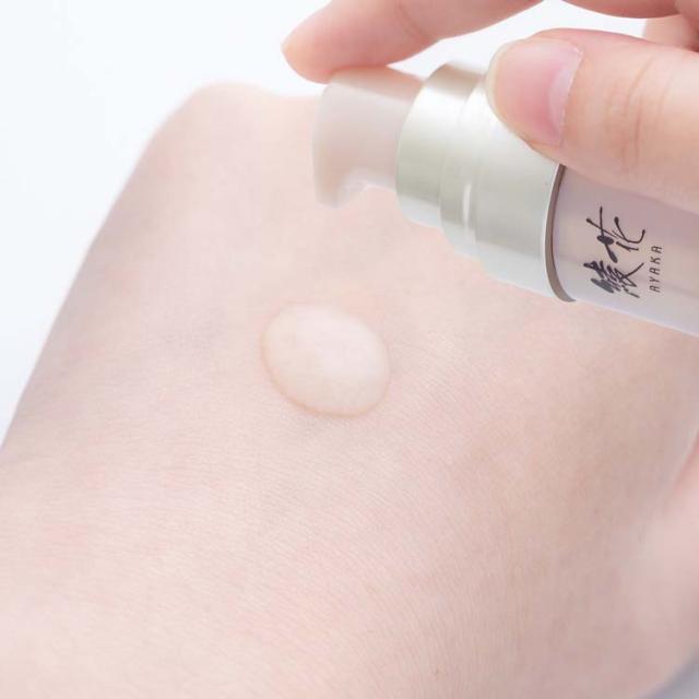 ・化粧水のあと、適量(ポンプ1〜2回)を手にとり、やさしく顔全体にのばします。そのあと、手のひらで顔をつつみ込むようにしてしっかりとなじませます。