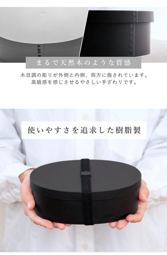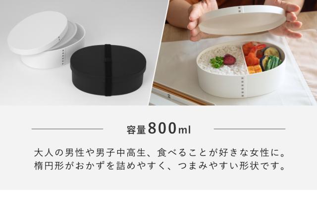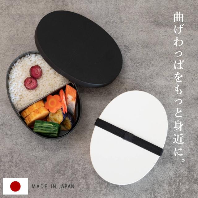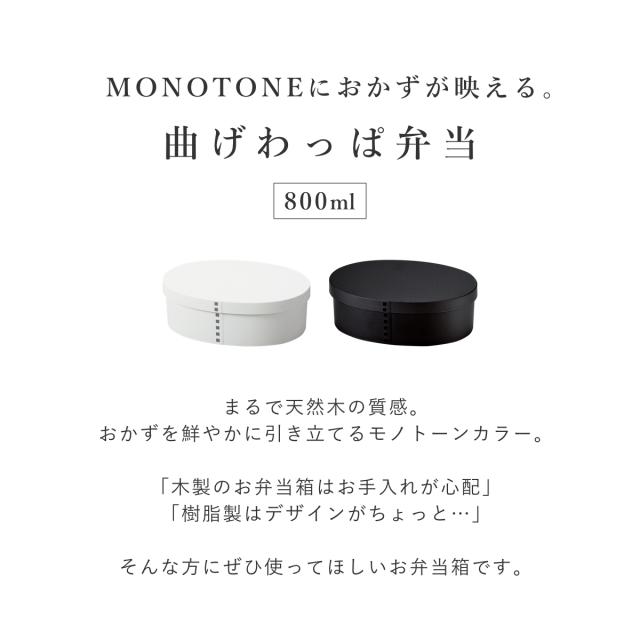 お弁当箱 1段 曲げわっぱ レンジ対応 800ml モノトーン曲げわっぱ ( 日本製 食洗機対応 抗菌 曲げわっぱ弁当箱 曲げわっぱ風 わっぱ弁当箱 弁当 一段弁当箱 食洗機OK レンジOK 一段 小判型 男性 ホワイト ブラック モノトーン )